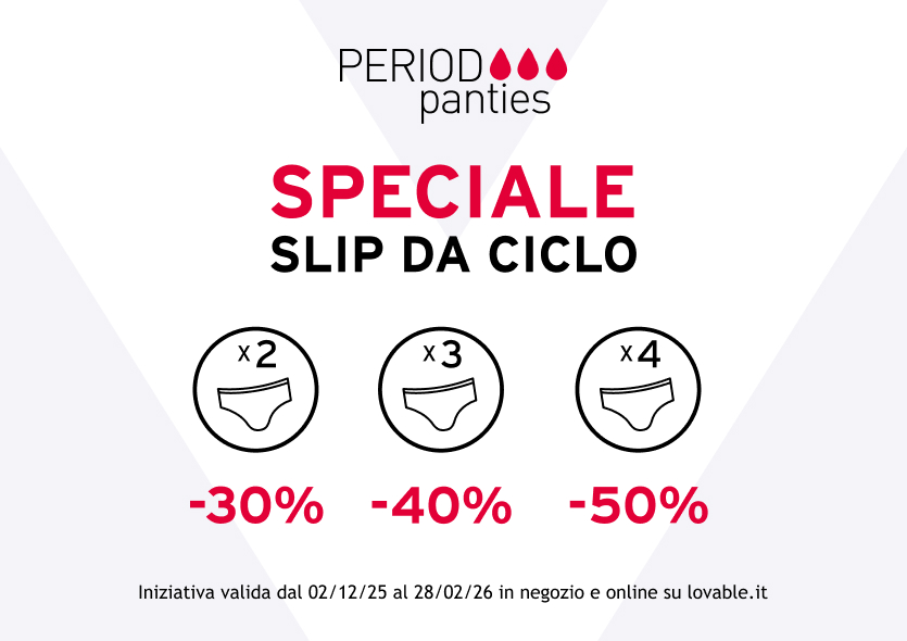 ACQUISTA 2, 3 o 4 PERIOD PANTIES, GLI SLIP DA CICLO PER DONNE E ADOLESCENTI, E OTTIENI UNO SCONTO FINO AL -50%!