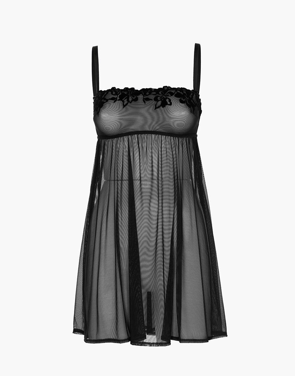 Babydoll Velvet Embroidery in tulle e velluto, nero