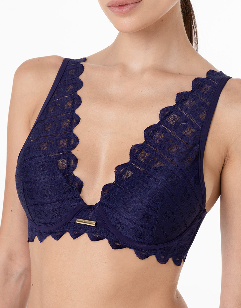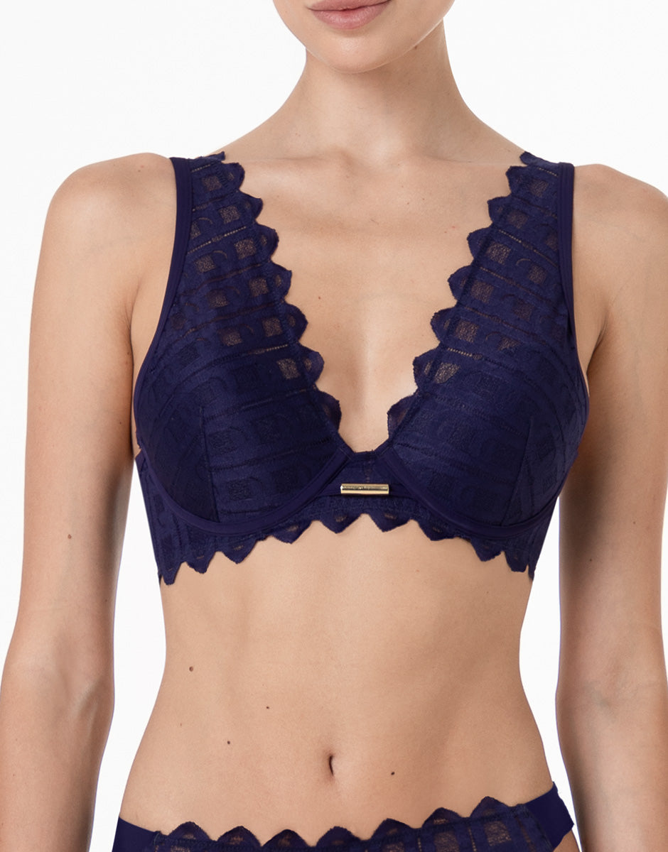 The dark purple color intensifies the design and gives depth to the model, making it perfect for a bold, feminine, and contemporary intimate look.