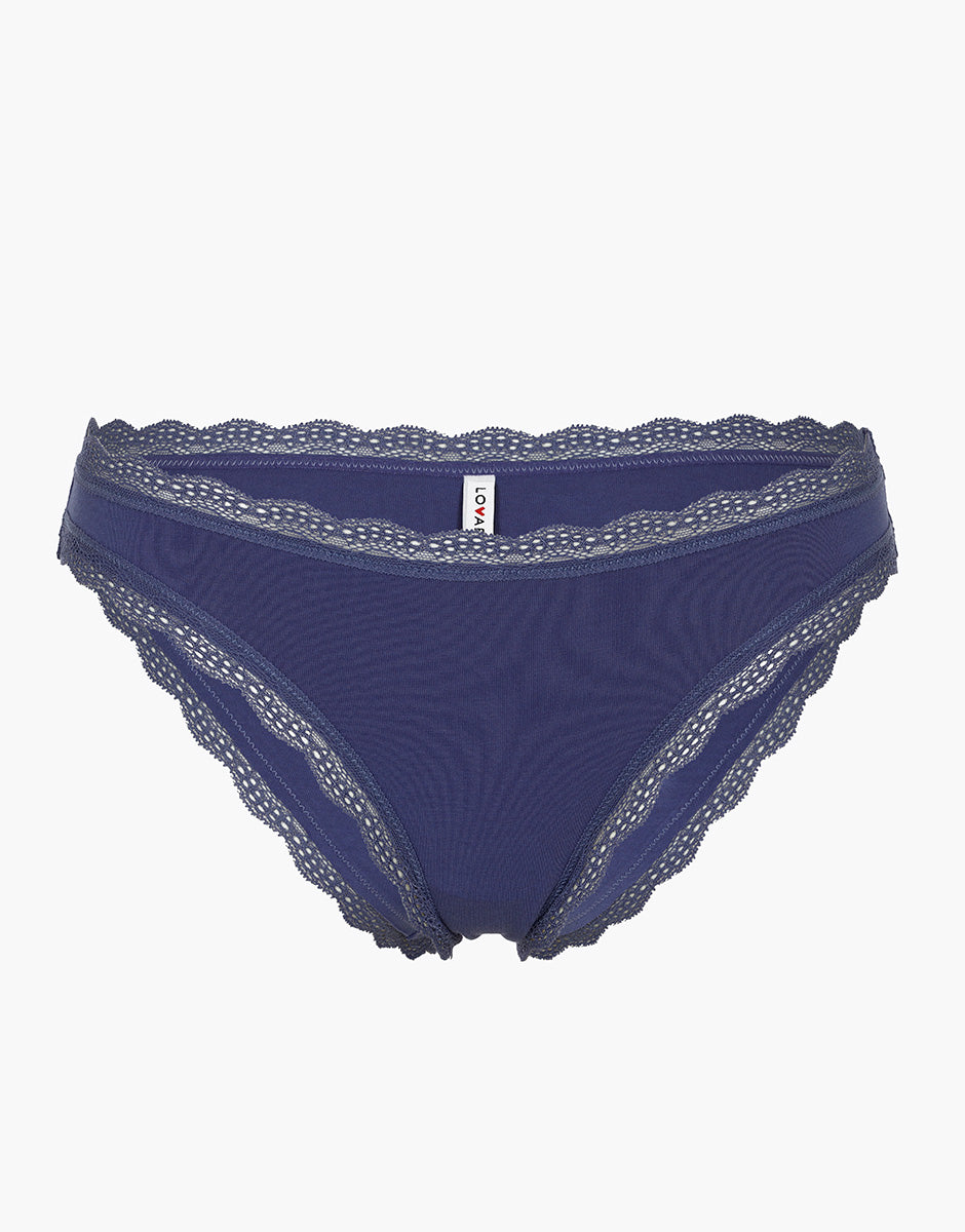 Lovable Panties briefs in stretch cotton and lace, purple-blue