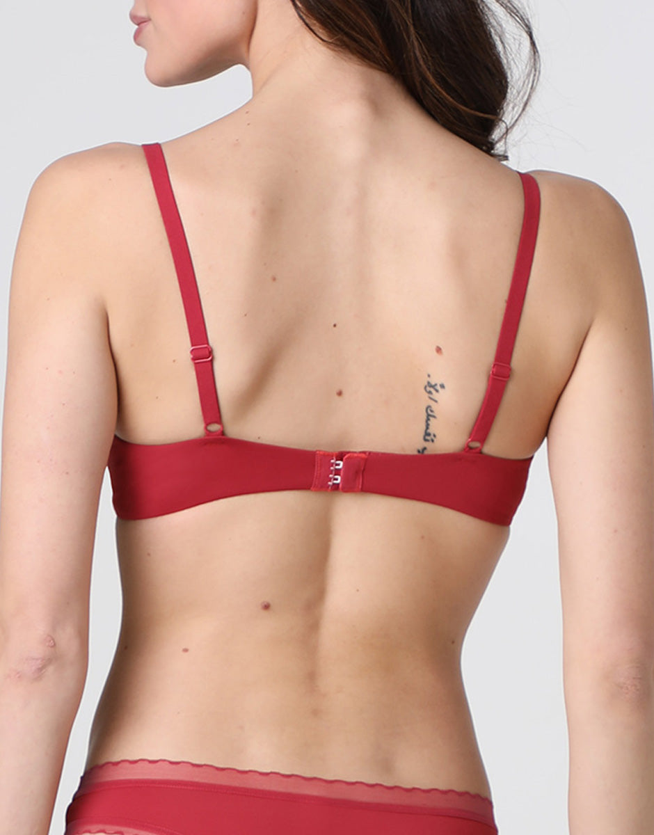 The inner side panel provides gentle support, while the ultra-flat, decorated elastic at the neckline ensures a clean line under clothing and a stable fit. The small bow at the center of the bust adds a feminine and refined detail, maintaining the essential style of the line.