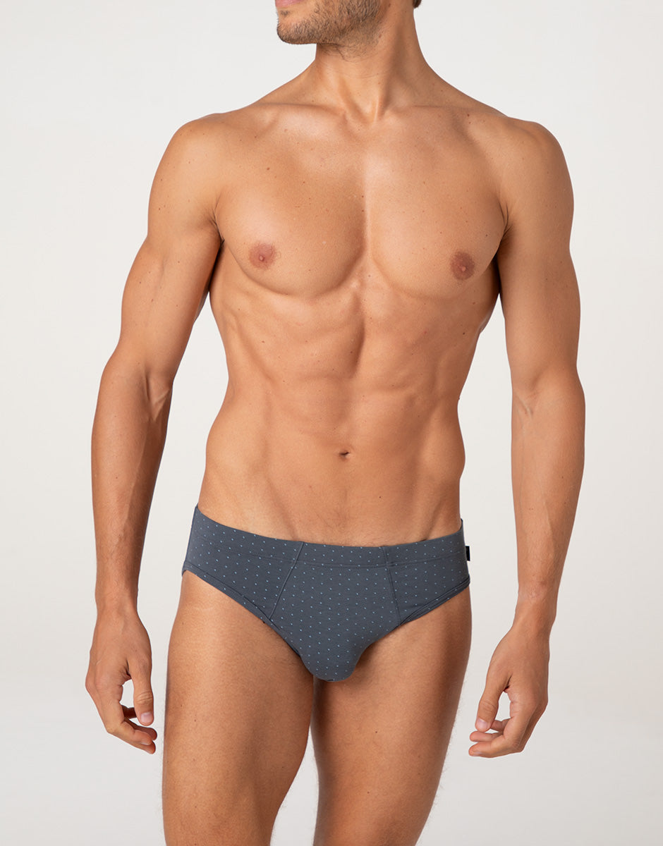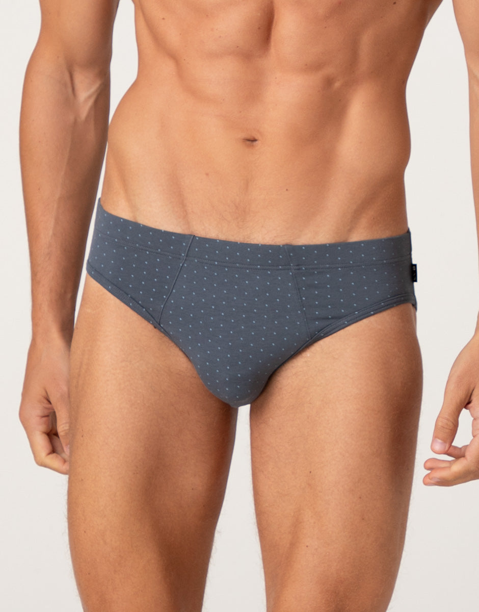 Printed Cotton Modal Briefs, anthracite with blue polka dots