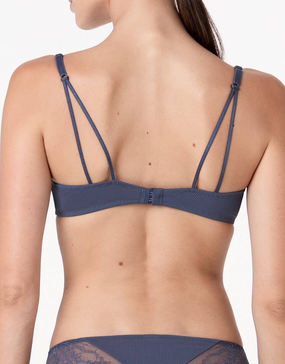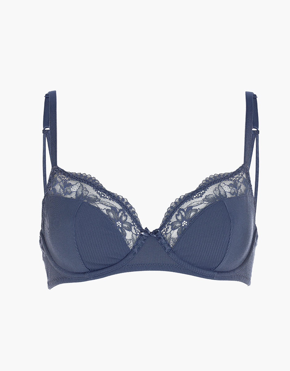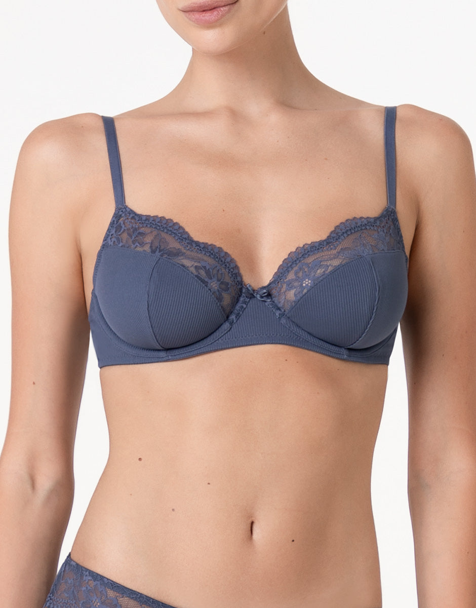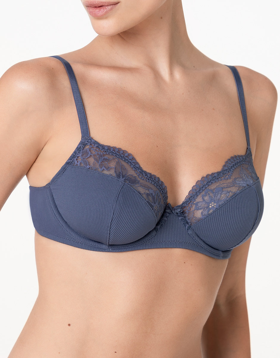 Reggiseno con Ferretto Casual Rib Lace in microfibra e pizzo, blu polvere