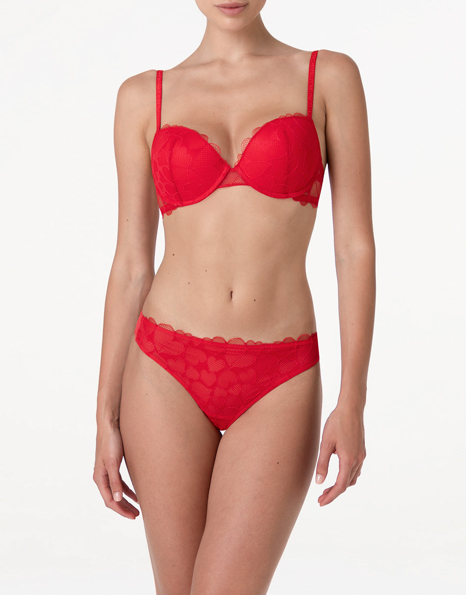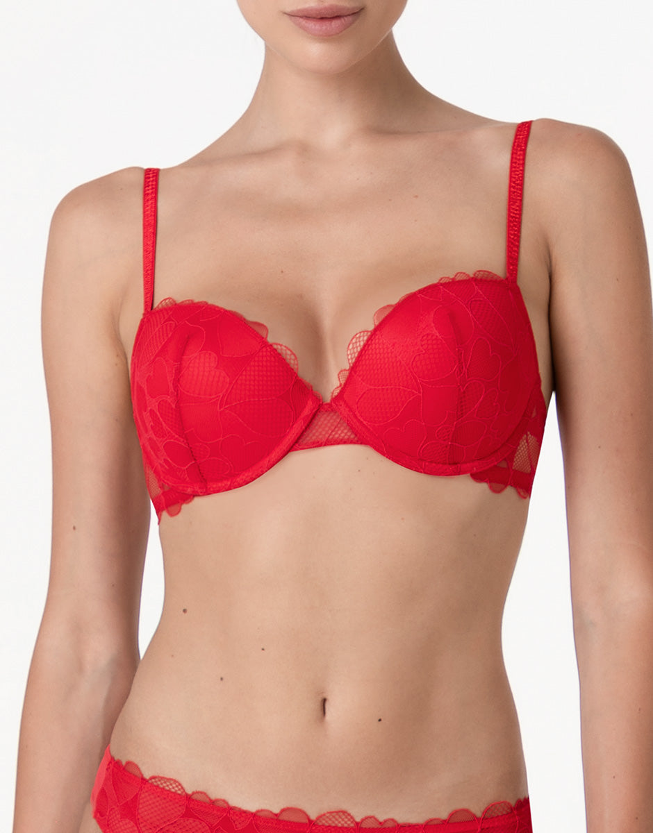 Reggiseno con Ferretto Push-Up Romance Hearts in tulle, rosso cuori