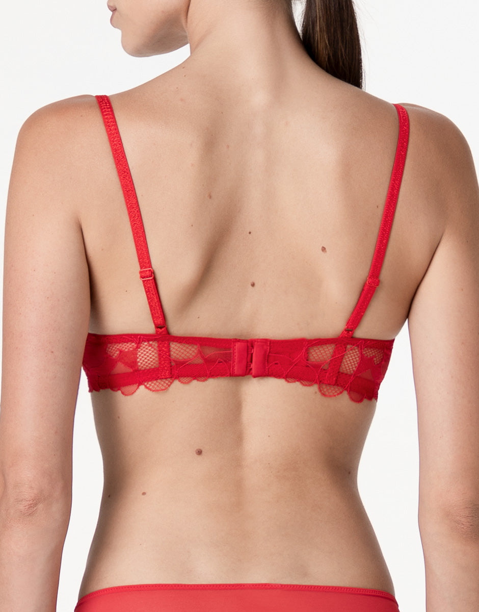Le coppe push-up valorizzano il décolleté con un effetto modellante, mentre la struttura con ferretto definisce la forma del seno in modo armonioso e deciso. La schiena in tulle a strato singolo mantiene il design leggero e coerente con l’estetica della linea, contribuendo a un effetto visivo arioso sulla pelle.
