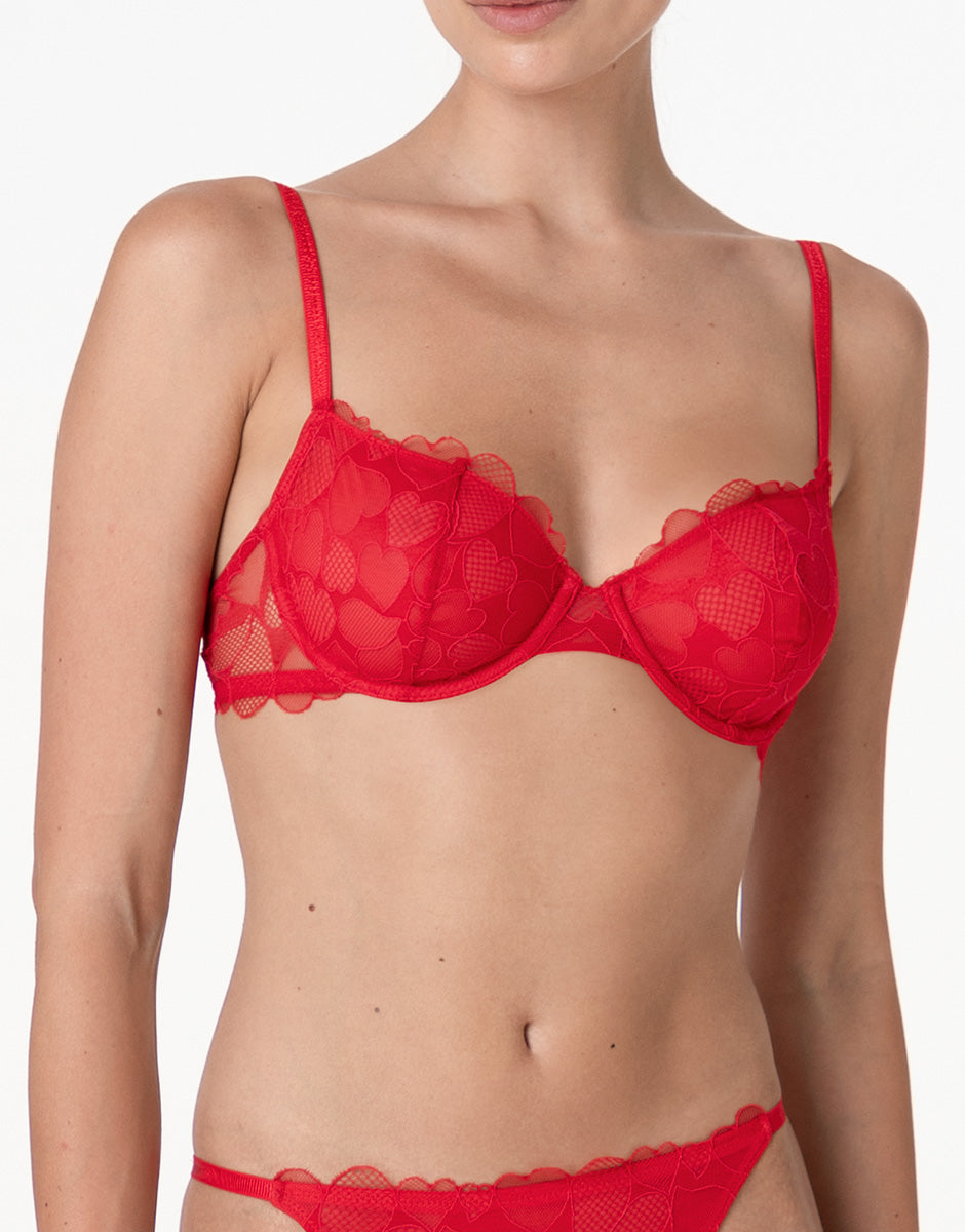 Reggiseno con Ferretto Romance Hearts in tulle, rosso cuori