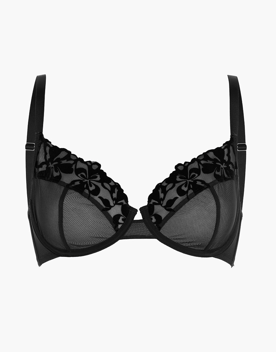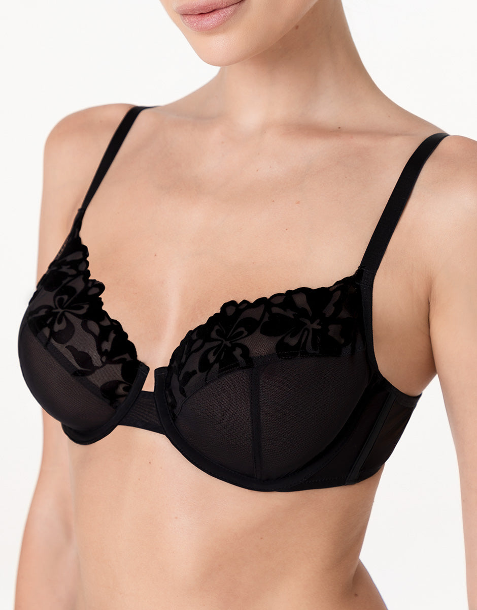 Reggiseno con Ferretto Velvet Embroidery in tulle e velluto, nero