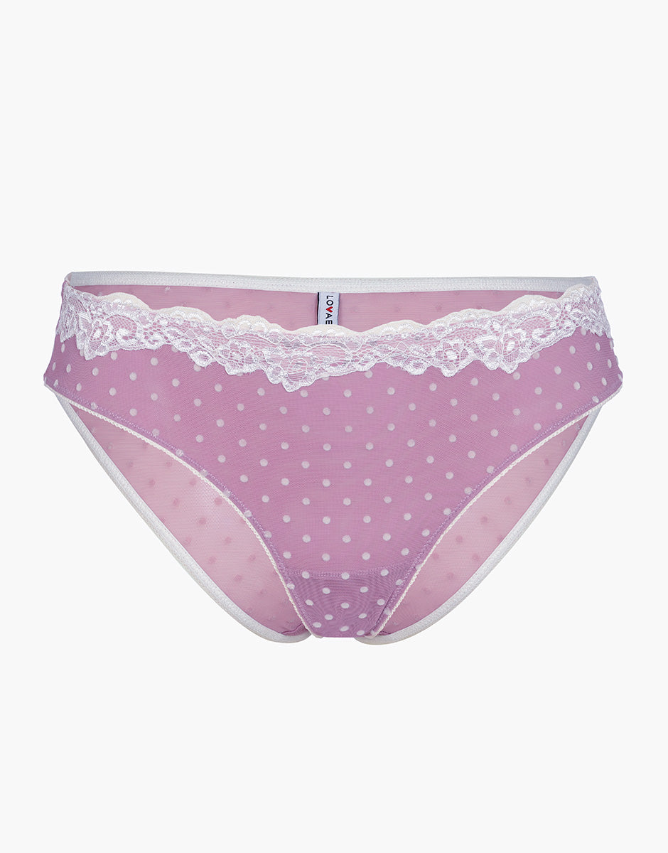 Velvet Tulle briefs in lace and tulle, pink with ivory polka dots