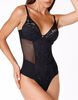 DESCRIZIONE: Un body unico per sentirmi subito femminile e pronta per sfoggiare le mie armi di seduzione. Questo modello è realizzato in pizzo riciclato e certificato per una scelta sostenibile e consapevole. In aggiunta, il tulle riesce a dar vita a intriganti giochi di trasparenze, mentre il pizzo floreale dona un tocco delicato e raffinato al capo. Infine, la presenza del ferretto mi assicura pieno sostegno e valorizzazione.