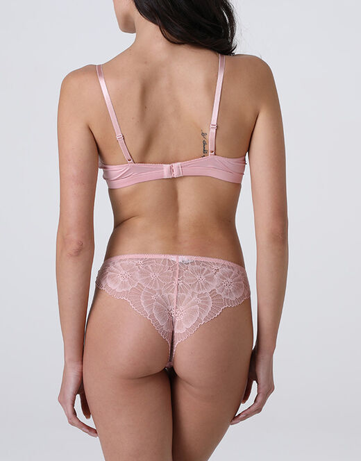 Il brasiliano Flowery Lace unisce sensualità e comfort in un capo intimo raffinato e femminile. Il pannello frontale in microfibra ultra morbida offre una sensazione effetto seconda pelle, liscia e avvolgente, perfetta per l’uso quotidiano. I fianchi in pizzo rosa vintage, impreziositi da motivi floreali circolari e bordi smerlati, si estendono verso le cosce e il davanti, aggiungendo un tocco romantico e sofisticato al design. Un piccolo fiocchetto in raso al centro della vita completa il look con una nota di dolcezza e cura nei dettagli. Il brasiliano Flowery Lace è ideale per chi desidera un intimo comodo ma curato, da abbinare ai reggiseni coordinati della linea per un effetto elegante e armonioso. La modella è alta 175 cm e indossa la taglia S - Brasiliano