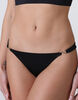 Il brasiliano L’Elegance in pizzo nero combina sensualità e raffinatezza in un modello elegante e femminile. La parte frontale in microfibra satinata avvolge il corpo con delicatezza, mentre gli accessori gioiello dorati posizionati sui fianchi donano un tocco di luce e glamour. Il retro è realizzato in pizzo ricamato con cucitura centrale, caratterizzato da un bordo smerlato che scende delicatamente, enfatizzando la silhouette con un effetto sofisticato e armonioso. Un capo pensato per chi cerca un intimo esclusivo, da abbinare ai reggiseni della linea L’Elegance per un completo ricercato e di classe. La modella è alta 175 cm e indossa la taglia S - Brasiliano con fronte in microfibra satinata