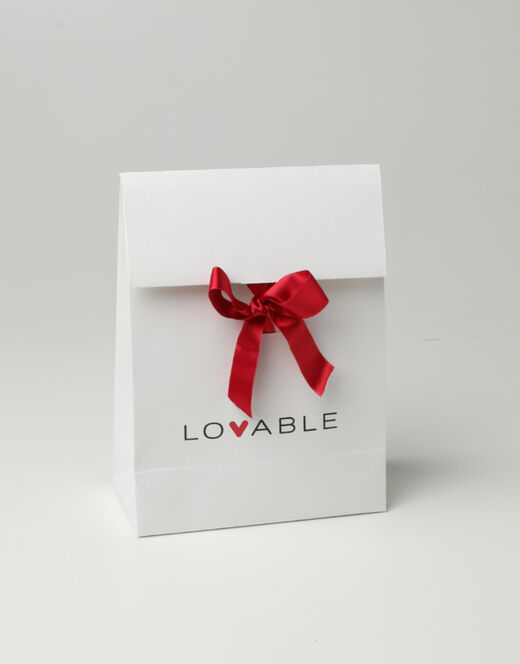 La Gift Box Media Lovable è perfetta per rendere unico ogni piccolo regalo, come intimo o accessori. Realizzata in carta materica color gesso di alta qualità, ha un aspetto elegante e dettagli curati. Il nastro in raso rosso, il logo Lovable sul fronte e il cuore sul retro completano la confezione con stile.