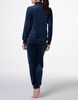 Il pantalone coordinato presenta polsini elasticizzati e una coulisse logata regolabile in vita, per una vestibilità personalizzata e confortevole. Realizzato in un tessuto elasticizzato a base di poliestere e elastan, questo completo in ciniglia offre morbidezza, calore e flessibilità, ideali per accompagnarti durante le tue giornate di riposo o attività leggere.