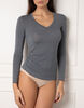 Maglia a manica lunga con scollo a V in modal e cashmere, grigio antracite