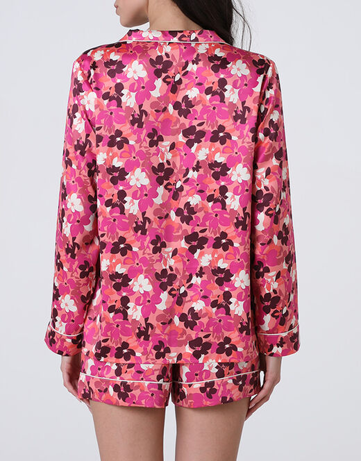 Aggiungi un tocco di stile e comfort al tuo guardaroba da notte con questo pantaloncino in satin dalla delicata fantasia floreale nei toni vivaci del rosa fucsia. Il tessuto leggero e morbido assicura una vestibilità comoda e piacevole per i momenti di relax.