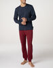 Il pantalone vinaccia, con polsini al fondo gamba, coulisse regolabile e tasca posteriore, completa il pigiama con praticità e facilità di movimento.