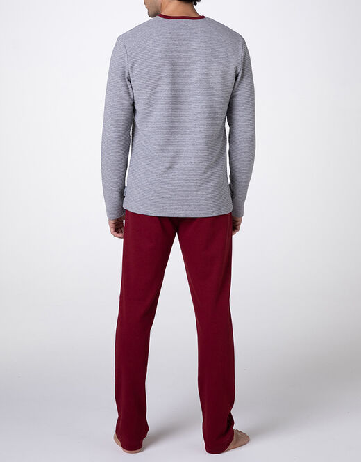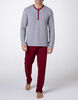 Pigiama Lungo Collo Serafino Warm Fabric e Interlock, grigio melange e bordeaux