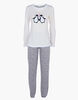 Il pantalone, in contrasto grigio melange, è decorato con stampa allover di piccoli pinguini e fondo arricciato, garantendo comfort e praticità durante il riposo. Un completo pensato per unire stile, calore e accoglienza, perfetto per serate rilassanti e coccolose.