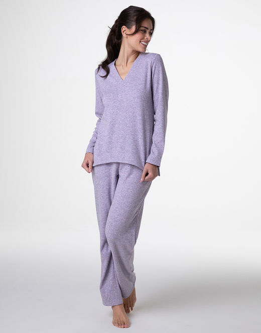 Pigiama Lungo scollo a V in Interlock garzato, rosa orchidea