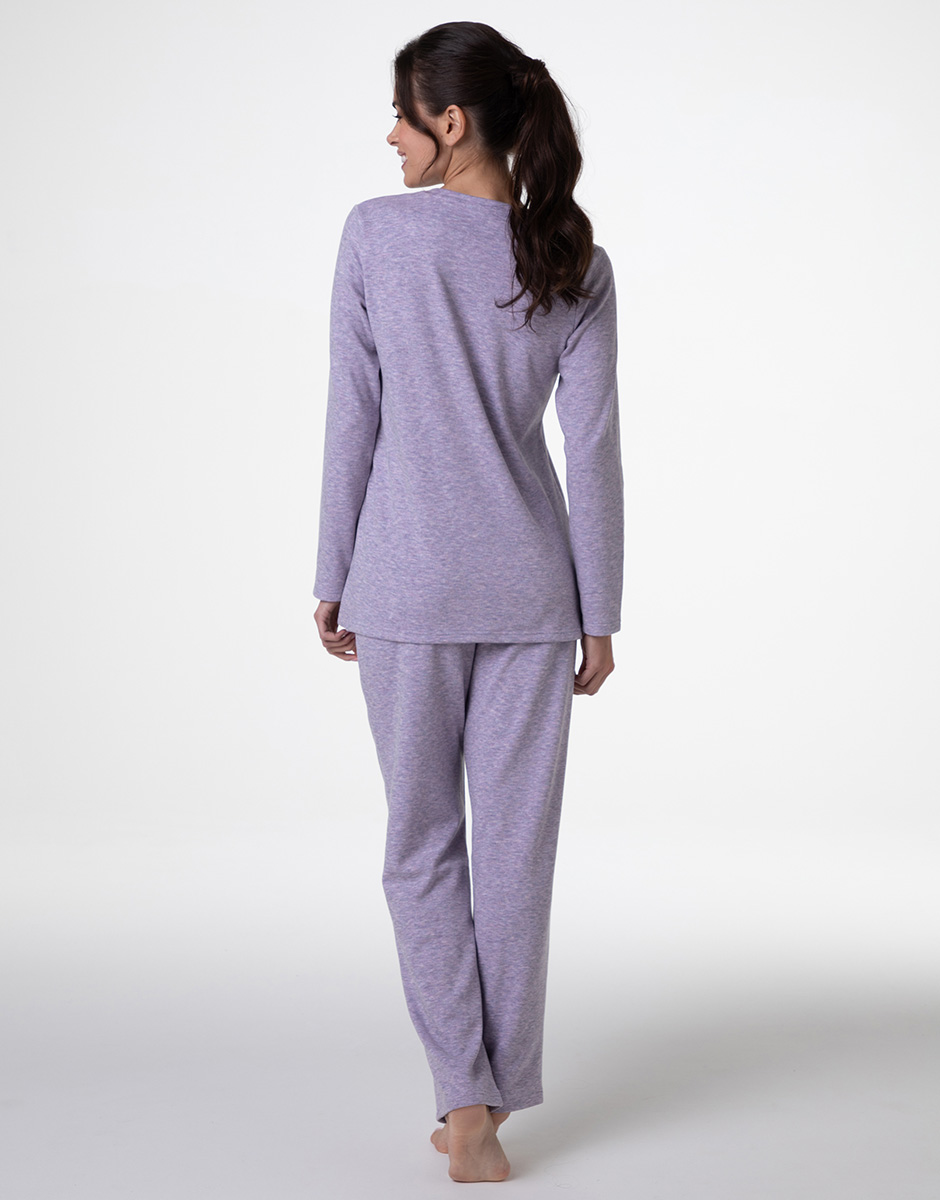 Un pigiama lungo da donna realizzato in morbido interlock garzato, pensato per avvolgere il corpo con calore e comfort durante le serate più fresche. Il colore rosa orchidea dona un tocco femminile e delicato, perfetto per chi cerca un homewear elegante e accogliente.