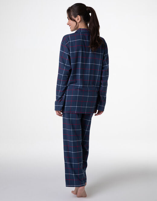 Scopri il calore e la morbidezza del pigiama unisex in flanella garzata, realizzato in tinto filo con fantasia check nei toni del blu, rosso e bianco. Dal taglio uomo e dalla vestibilità classica, questo modello è pensato per garantire massimo comfort e accompagnarti con stile nelle serate più fredde.