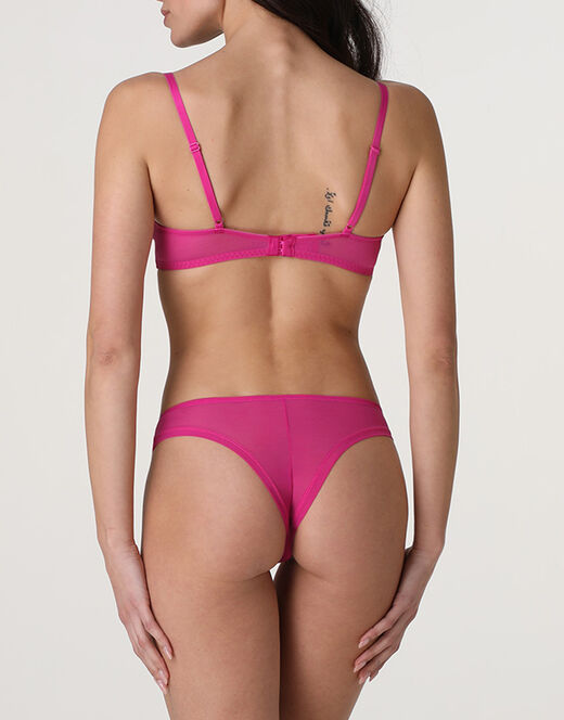 Scopri il reggiseno balconcino con ferretto della collezione Petal Lace, realizzato in luminoso pizzo fucsia. Le coppe con cuciture verticali modellano delicatamente il décolleté, mentre la finitura elastica garantisce comfort e vestibilità perfetta. Le schiene in tulle aggiungono leggerezza e femminilità, rendendo il capo ideale sia per tutti i giorni che per un look speciale.