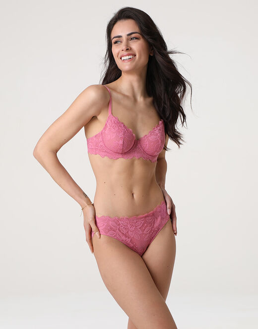Scopri il reggiseno con ferretto della serie Natural Lace, proposto nell'elegante tonalità rosa naturale, ottenuta attraverso una tintura naturale che dona unicità a ogni capo. Le coppe in pizzo, con taglio verticale a due e foderate con tulle, assicurano un supporto delicato ma efficace. Il sottoseno impreziosito da una balza in pizzo e le schiene doppiate in tulle aggiungono un tocco raffinato al design. Le spalline elastiche regolabili garantiscono il massimo comfort e una vestibilità personalizzata.