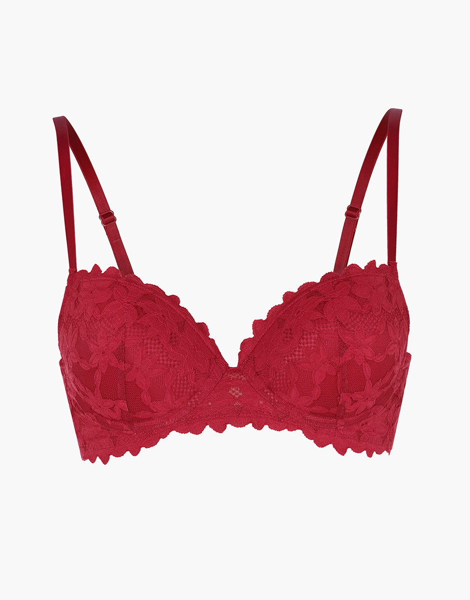 Scopri il Reggiseno Push-Up con ferretto della collezione Ribbon Lace, realizzato in raffinato pizzo rosso.