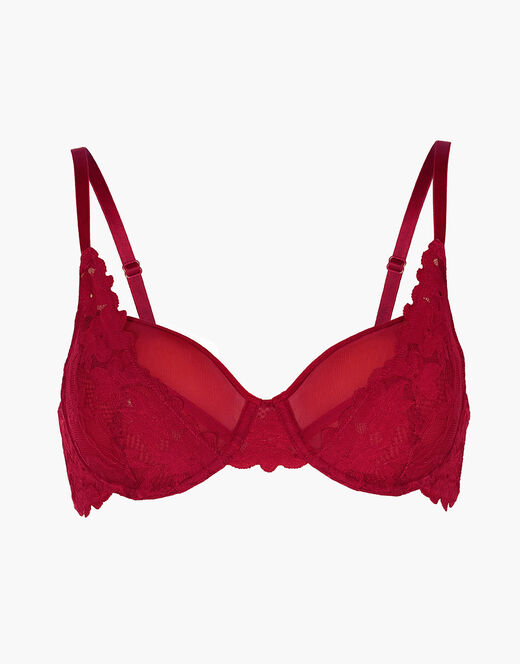 Scopri il Reggiseno con ferretto della collezione Ribbon Lace, realizzato in tulle e pizzo in un intenso rosso elegante.