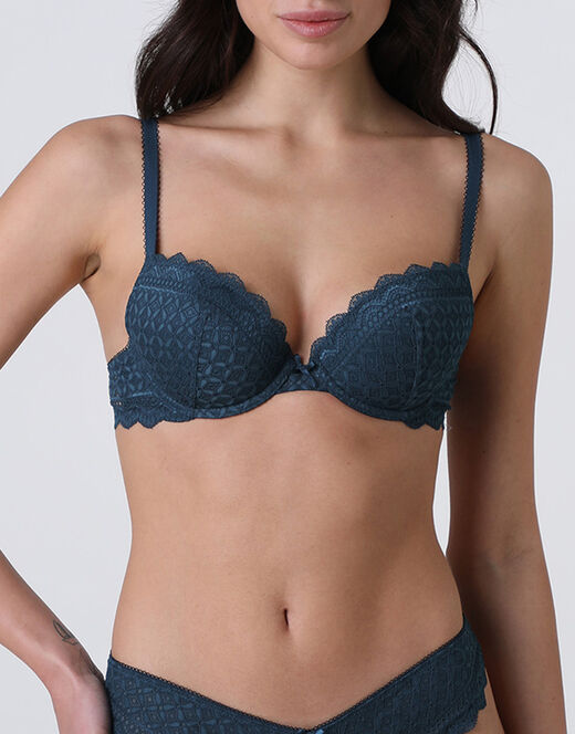 Reggiseno Imbottito con Ferretto Graphic Lace in pizzo, ottanio