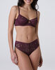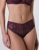 Lo slip in pizzo Art Flower Lace, nella sofisticata tonalità vinaccia, è la scelta ideale per chi desidera un intimo elegante e comodo da indossare ogni giorno. Realizzato interamente in pizzo con motivo floreale grafico, avvolge le forme con leggerezza e sensualità, seguendo le linee del corpo grazie alle cuciture centrali sul fronte e sul retro. I bordi smerlati del pizzo, rivolti verso il basso, impreziosiscono sia il davanti che il dietro con un tocco romantico e femminile. In vita, la fascia elastica piatta assicura una tenuta stabile e una vestibilità confortevole, senza segni sulla pelle. Scegli lo slip Art Flower Lace per completare con stile e raffinatezza il tuo guardaroba di lingerie, in coordinato con i reggiseni della stessa collezione. La modella è alta 175 cm e indossa la taglia S - Slip in pizzo