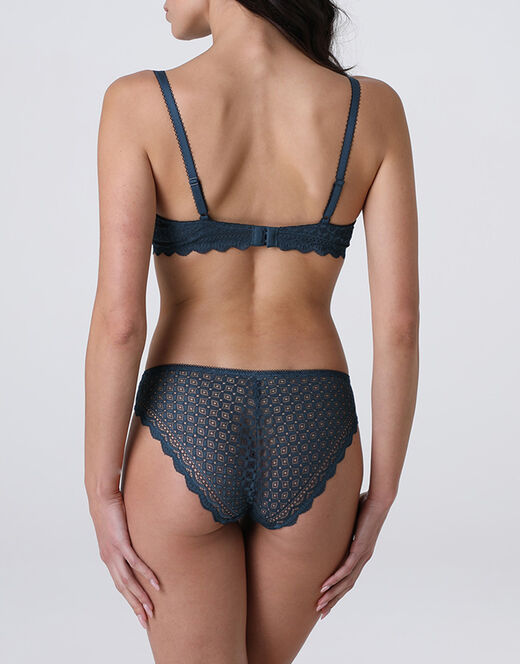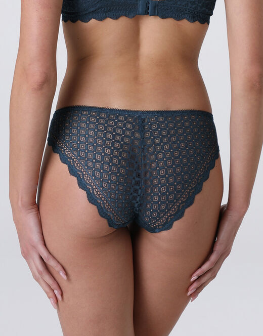 Lo slip Graphic Lace in pizzo ottanio unisce femminilità e comfort in un capo elegante e raffinato. Realizzato con pizzo morbido e leggero sia sul davanti che sul retro, presenta una cucitura centrale che valorizza la forma. Il bordo in pizzo smerlato, rivolto verso il basso, garantisce una finitura delicata e un effetto leggero sulla pelle.