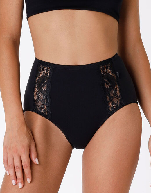 Slip maxi lovely charme, nero in cotone elasticizzato con pizzo