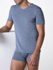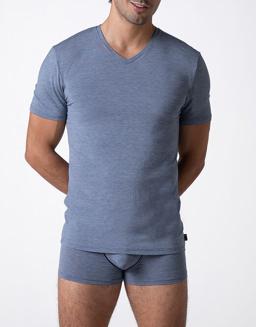 T-Shirt Scollo a V Micromodal Fil a Fil, azzurro jacquard