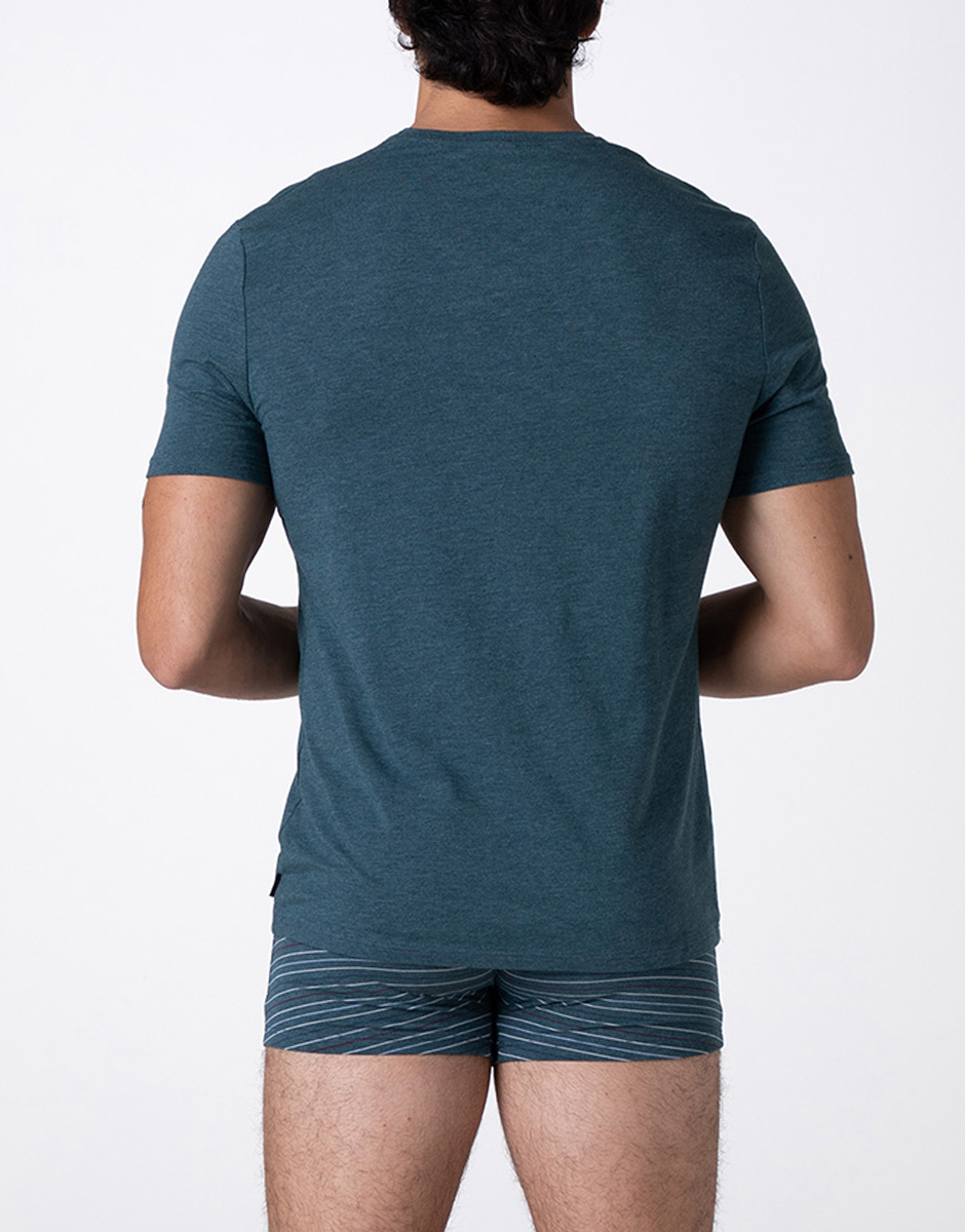 Scegli la T-Shirt Scollo a V Rephined Cotton Modal, verde melange per arricchire il tuo cassetto dell’intimo con un capo versatile, raffinato e comodo tutti i giorni.