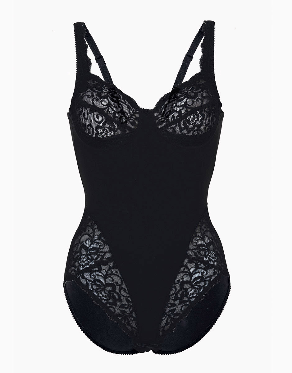 Body con ferretto lov’ring pizzo, nero. Media contenitività.