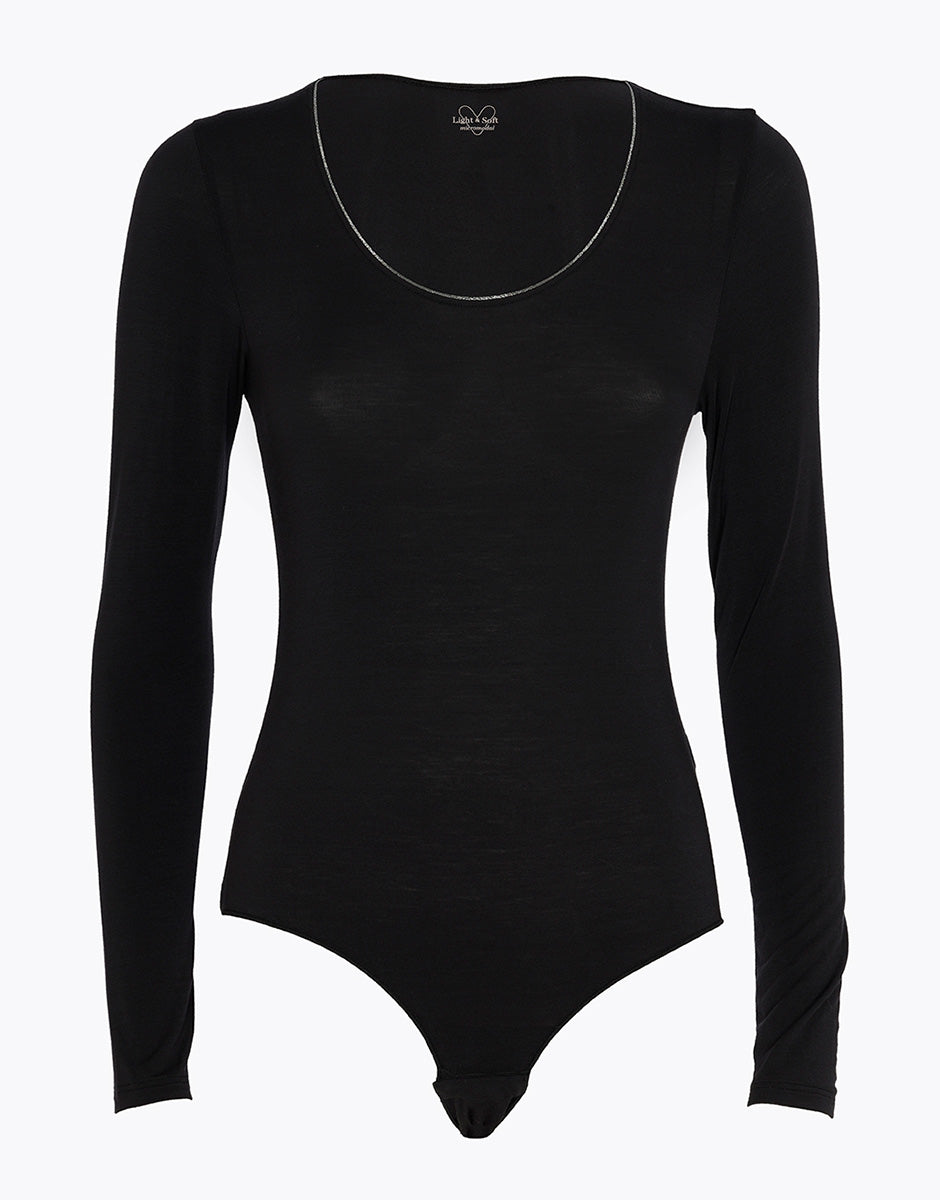 Body Manica Lunga Scollo Tondo Ampio Micromodal, nero