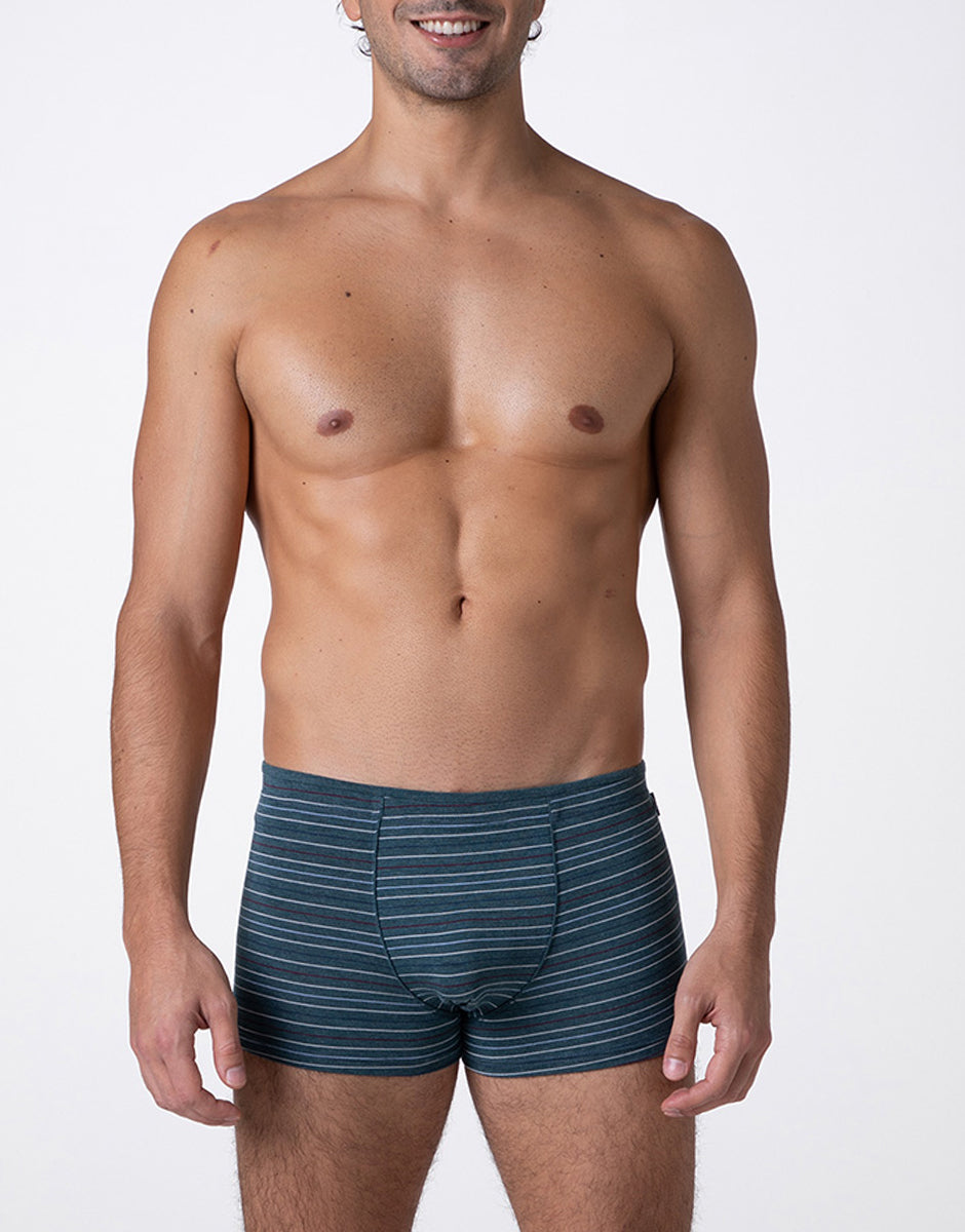 Scopri il Boxer della linea Rephined Cotton Modal, proposto con motivo rigato tinto in filo nei toni del verde.
