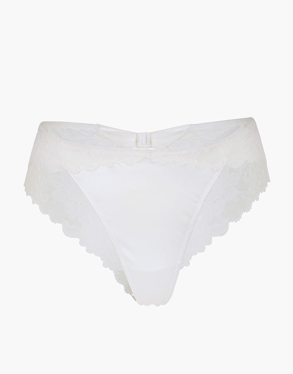 Brasiliano Beautiful Lace in pizzo e microfibra satinata, bianco latte