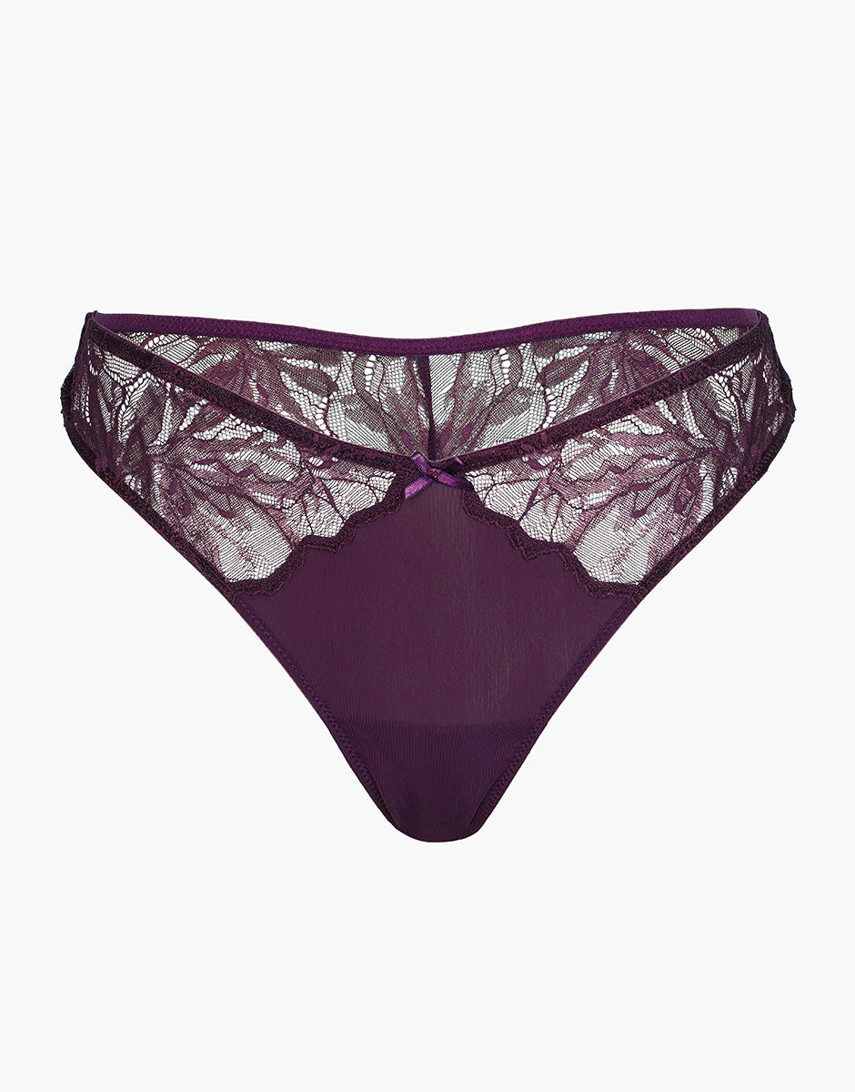 Scopri il brasiliano della collezione Graceful Lace, realizzato in pizzo, microfibra e tulle nella sofisticata tonalità vinaccia.