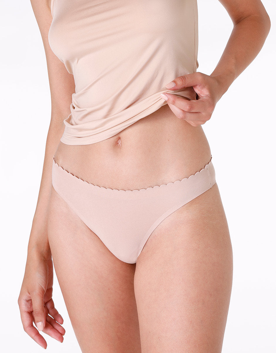 Scopri il massimo comfort con il nostro Brasiliano Invisible Softness nude. Realizzato in cotone elasticizzato, questo intimo brasiliano offre un equilibrio perfetto tra morbidezza e aderenza. L'assenza di bordi elastici sul girovita e sul girogambe, con finitura taglio a vivo e rinforzo adesivato, garantisce una vestibilità senza cuciture visibili. Il motivo festonato sul girovita aggiunge un tocco di eleganza e femminilità.