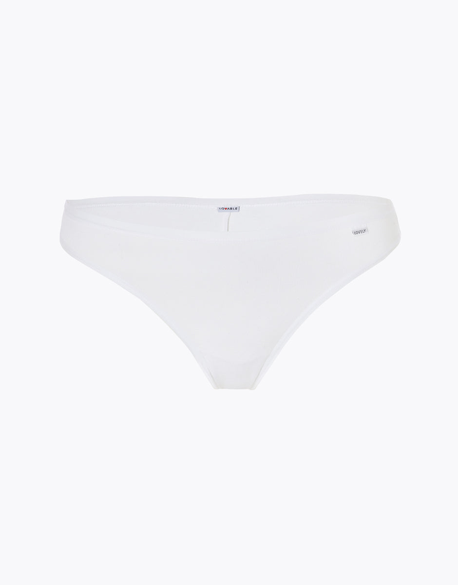 Essenziale brasiliano in cotone modal nel color bianco. Caratterizzato dal fianco basso, questo brasiliano è realizzato in cotone modal, una fibra conosciuta per morbidezza e traspirabilità, perfetta per un indosso quotidiano che sia confortevole e delicato con la pelle. Inoltre, il tassello interno cavallino è comporto per 100% in cotone, mentre le finiture del girovita e del girogambe sono ultrapiatte, invisibili sotto ogni abito. Infine, l’etichetta lovely sul girovita caratterizza questo slip che è un mix perfetto tra semplicità e comfort.