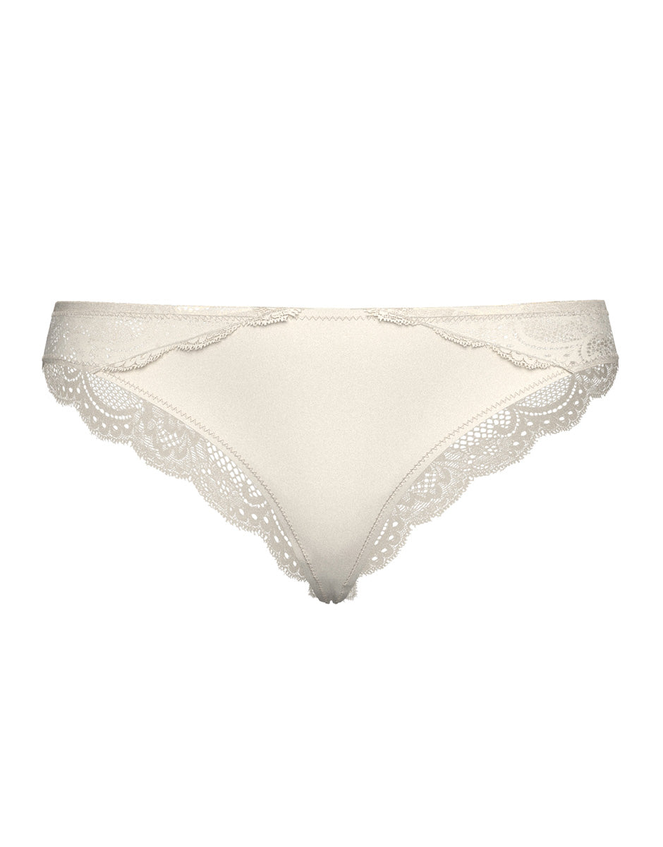 Brasiliano Trendy Lurex in microfibra e pizzo, bianco latte