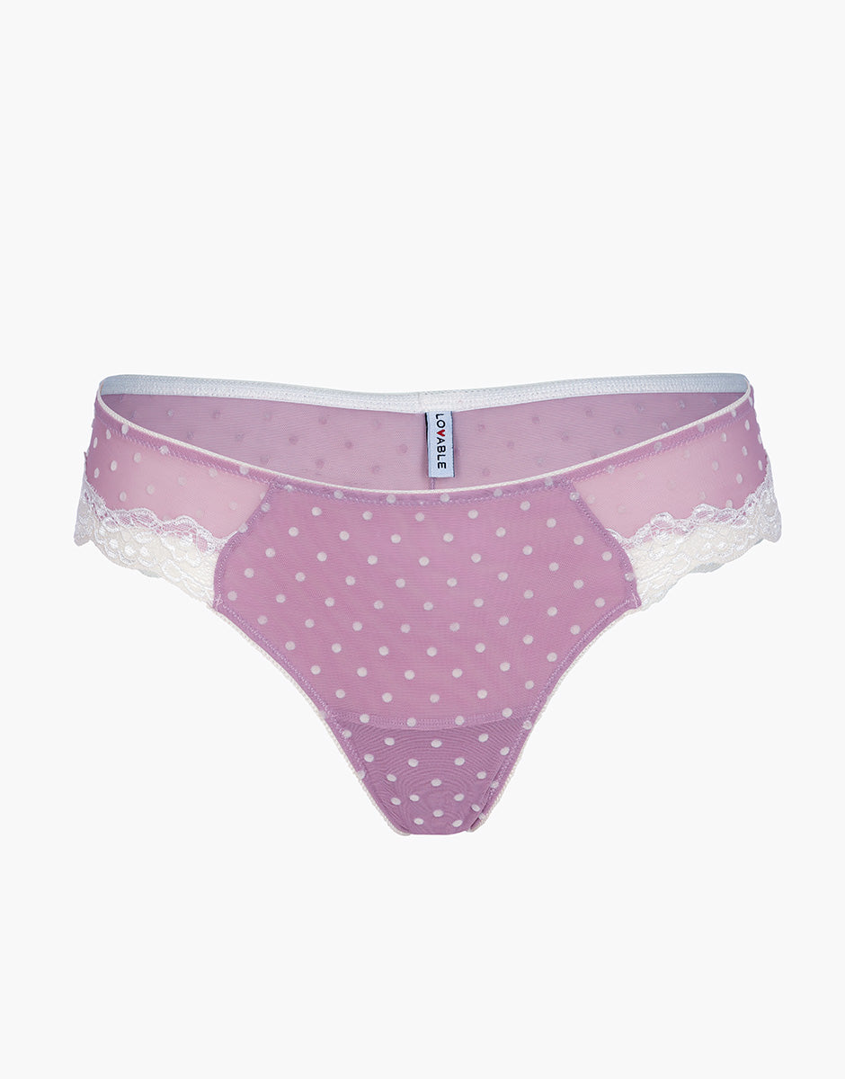 Scopri il brasiliano donna Velvet Tulle, realizzato in tulle elastico floccato color rosa orchidea con delicati pois avorio, pensato per chi ama un intimo femminile, elegante e sensuale.
