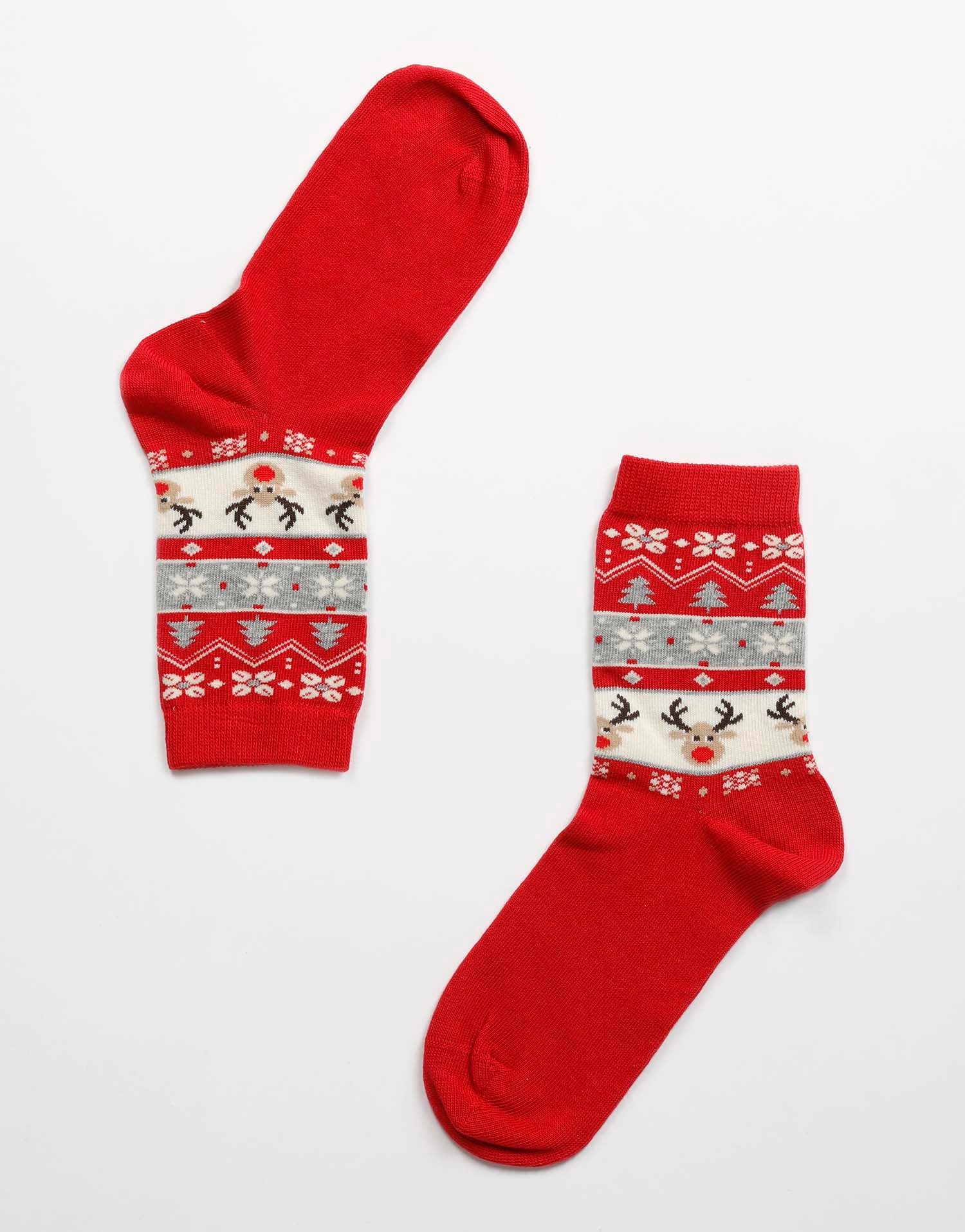 Calzini rossi con motivo natalizio, comodi e resistenti. Il dettaglio giusto per un Natale speciale.