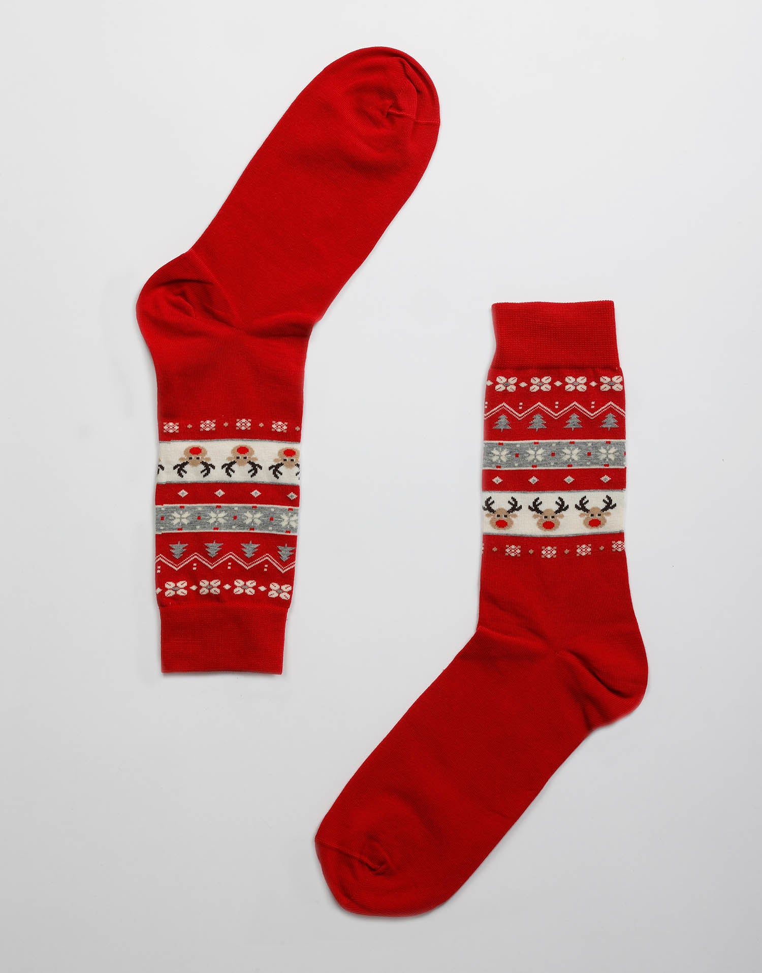 Calzini rossi con motivo natalizio, morbidi e resistenti. Il dettaglio giusto per un Natale speciale.