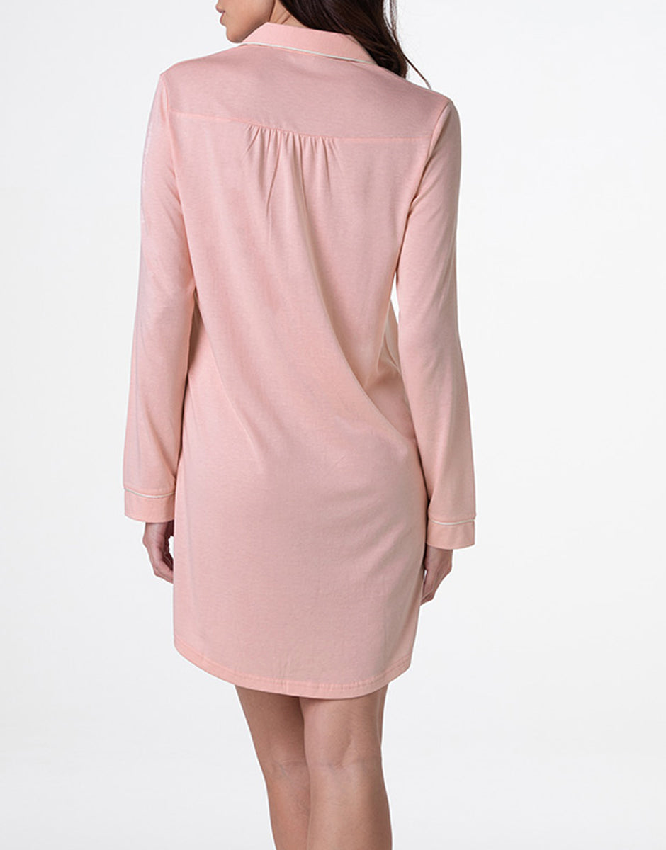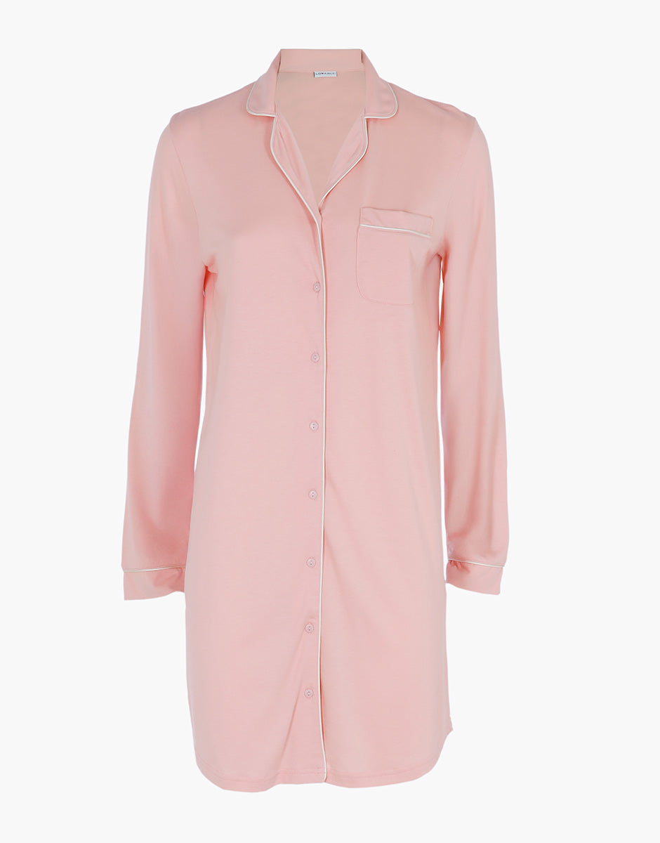 Camicia da notte aperta manica lunga in Cotone Modal, rosa vintage