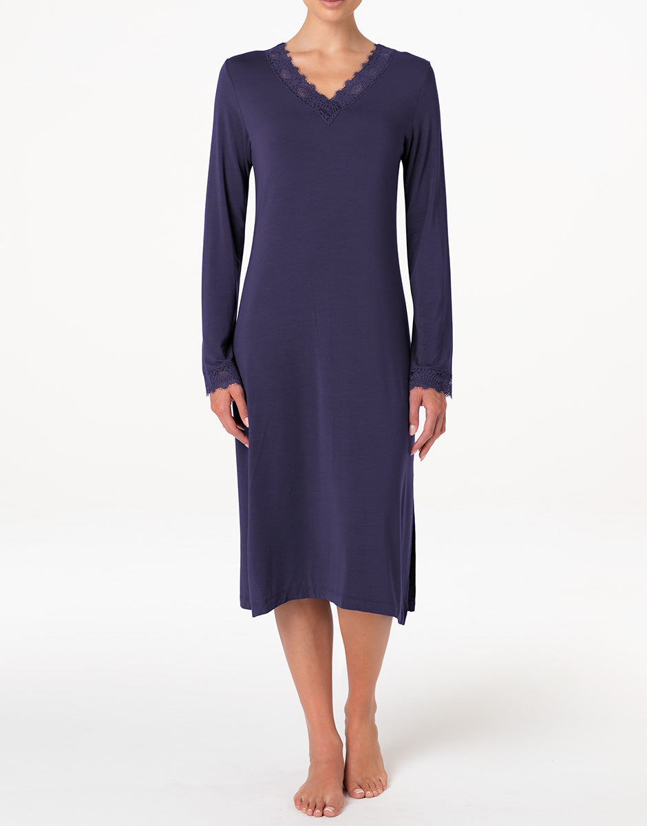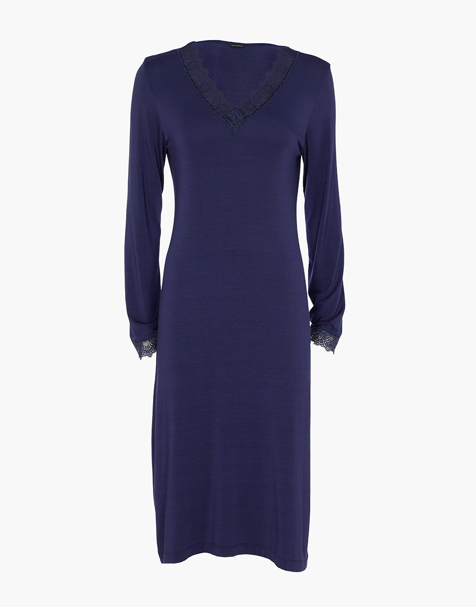 Camicia da Notte Lunga con scollo a V Elegant Modal, blu notte