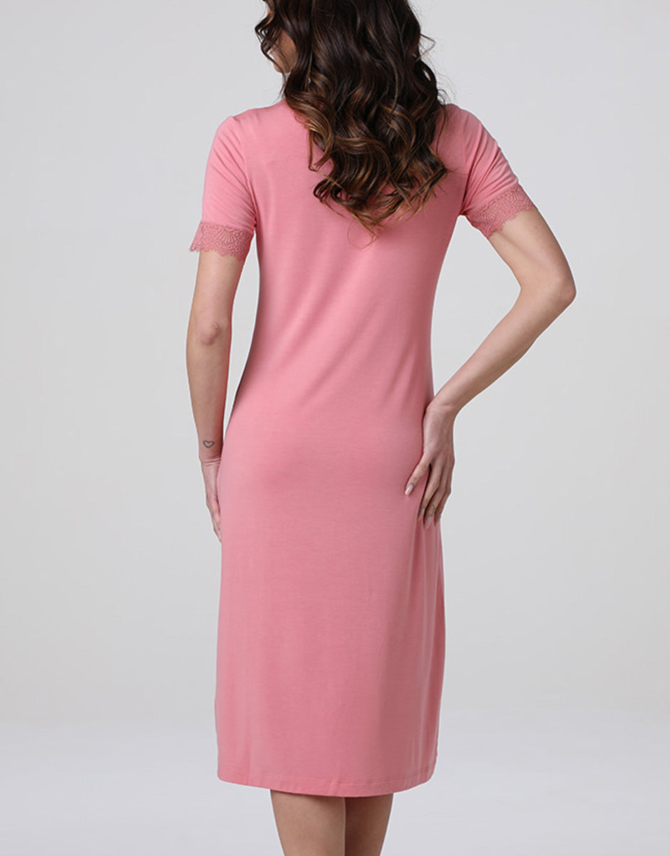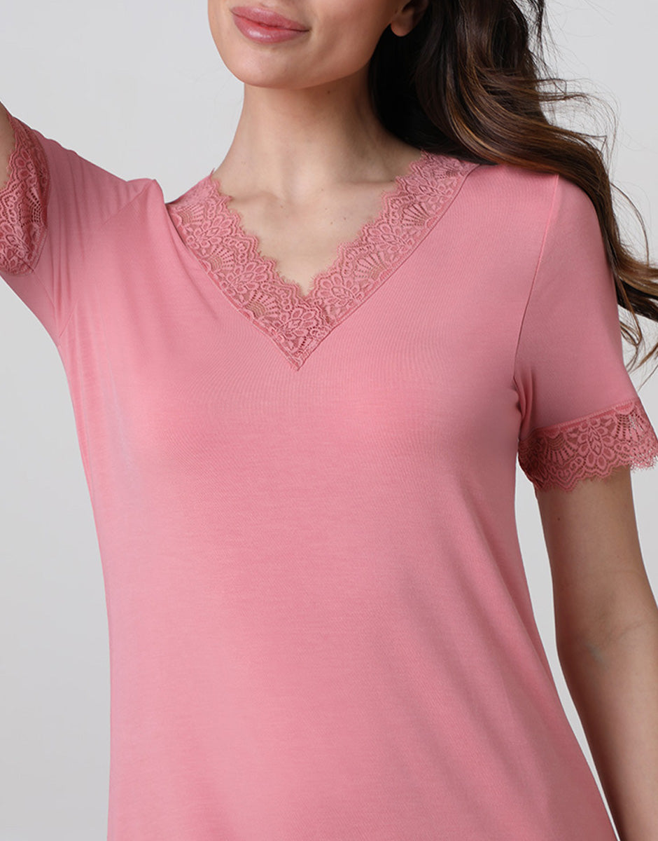 Camicia da Notte Manica Corta con scollo a V Elegant Modal, rosa malva