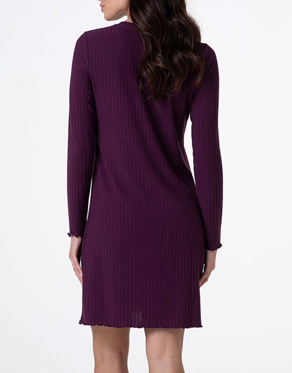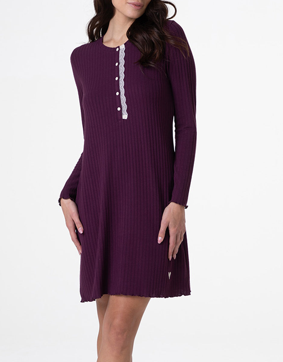Una camicia da notte elegante e confortevole, perfetta per i momenti di relax. Realizzata in morbido tessuto a costine elasticizzato, avvolge delicatamente la silhouette e regala una piacevole sensazione di comfort. Il colore vinaccia aggiunge calore e femminilità, ideale per le stagioni più fresche.